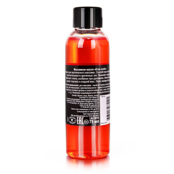 Серые будни, заполненные постоянными делами и хлопотами, очень утомляют и подавляют сексуальность человека. В итоге нет никакого настроя для реализации жарких сексуальных сценариев. Мы знаем, как исправить ситуацию, чтобы в жизни всегда было место романтике и страсти, а близость была желанной. Эффективным оружием в борьбе за качество интимной жизни являются массажные масла и свечи. Купив их, вы сможете полноценно расслабиться и забыть о тревогах, погрузиться в мир фантазий и чувственных переживаний. Массажное масло Eros exotic с ароматом персика - 75 мл. и другие варианты из нашего каталога позволяют создать особое настроение, что усиливает наслаждение от каждого прикосновения. Продукция имеет тонкие приятные ароматы и абсолютно безопасна для здоровья. Производится доставка товара по всей России.