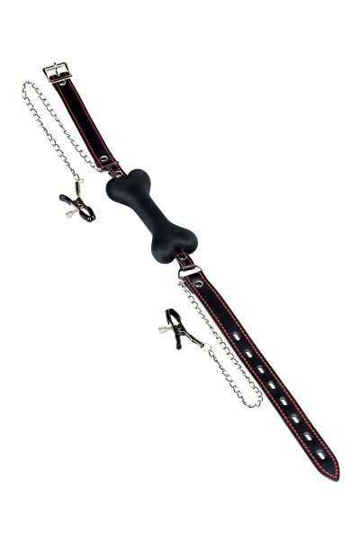 Черный кляп-трензель Theatre в виде косточки с зажимами для сосков – товар безупречного качества, созданный из безопасного для здоровья материала. Главное правило его использования – следить за реакцией и поведением партнера, чтобы игра доставляла удовольствие. Черный кляп-трензель Theatre в виде косточки с зажимами для сосков – это возможность выйти за границы, установленные вами же, добавить пикантности в интимную близость, познать острое наслаждение, о котором раньше, возможно, только мечталось.