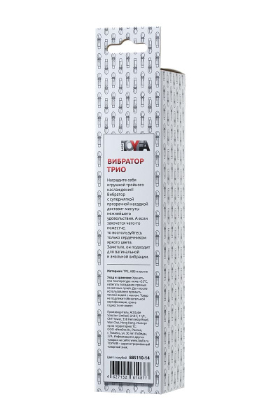 Классический вибратор TOYFA Trio Vibe голубого цвета - 18 см. — универсальная модель с лаконичным дизайном. Ее можно использовать для самоудовлетворения, как элемент ролевой игры с партнером или в качестве дополнительной стимуляции во время секса. Игрушка безопасна, так как создана из гипоаллергенных материалов, и позволяет сохранить интимное здоровье. Классический вибратор TOYFA Trio Vibe голубого цвета - 18 см. — волшебная палочка, которая исполнит тайные фантазии и заставит вас забыть о стеснении и стереотипах.
