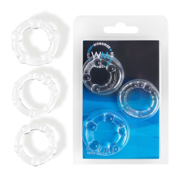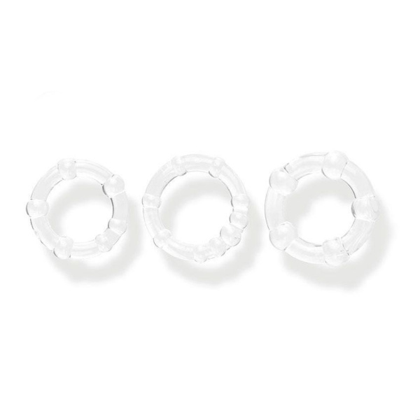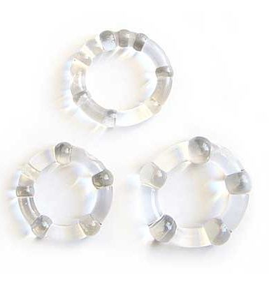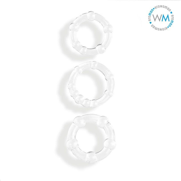 Набор из 3 прозрачных эрекционных колечек — игрушка для мужчин, которые стремятся разнообразить свою интимную жизнь и не боятся при этом прибегать к современным продуктам секс-индустрии. Данная модель позволит увеличить время эрекции за счет снижения оттока крови от члена, а значит, и время полового акта, а также его качество. Это возможность попробовать больше интересных поз, насладиться новыми ощущениями в полной мере, открыть новые стороны своей чувственности. Купить эрекционное кольцо можно не только для развлечения, но и по медицинским показаниям (аксессуар помогает при эректильной дисфункции). Такая универсальность делает товар очень востребованным. Он абсолютно безопасен при соблюдении нехитрых правил использования, ухаживать за ним несложно. Доставку заказа по России мы организуем в кратчайшие сроки.