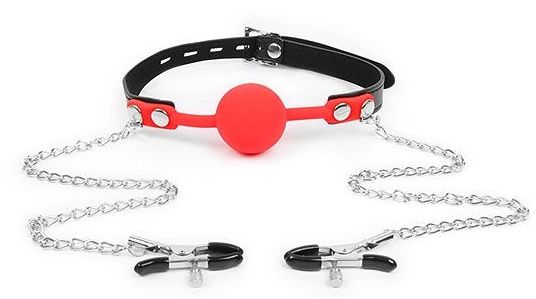 Красный кляп-шарик с зажимами на соски на металлической цепочке – товар безупречного качества, созданный из безопасного для здоровья материала. Главное правило его использования – следить за реакцией и поведением партнера, чтобы игра доставляла удовольствие. Красный кляп-шарик с зажимами на соски на металлической цепочке – это возможность выйти за границы, установленные вами же, добавить пикантности в интимную близость, познать острое наслаждение, о котором раньше, возможно, только мечталось.