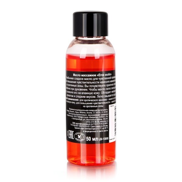 Серые будни, заполненные постоянными делами и хлопотами, очень утомляют и подавляют сексуальность человека. В итоге нет никакого настроя для реализации жарких сексуальных сценариев. Мы знаем, как исправить ситуацию, чтобы в жизни всегда было место романтике и страсти, а близость была желанной. Эффективным оружием в борьбе за качество интимной жизни являются массажные масла и свечи. Купив их, вы сможете полноценно расслабиться и забыть о тревогах, погрузиться в мир фантазий и чувственных переживаний. Массажное масло Eros Exotic с ароматом персика - 50 мл. и другие варианты из нашего каталога позволяют создать особое настроение, что усиливает наслаждение от каждого прикосновения. Продукция имеет тонкие приятные ароматы и абсолютно безопасна для здоровья. Производится доставка товара по всей России.