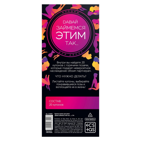 Эротическая игра-купоны с позами «Давай займемся этим так…» — отличный вариант для романтического свидания. Ужин давно позади, обстановка располагает к близости, но хочется еще немного продлить томление? Игра быстро затянет вас и доставит истинное наслаждение. Вам предстоит выполнять задания и получать награды, которые вам наверняка понравятся. Оставьте онлайн-заказ, и долго ждать доставки не придется (работаем по всей России).