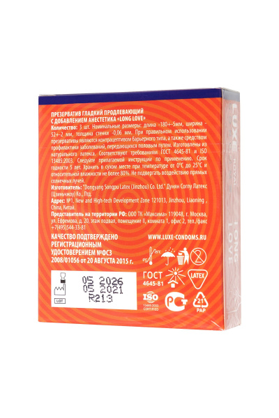 Презервативы с продлевающим эффектом LUXE Royal Long Love - 3 шт. — надежная защита, обеспечивающая комфорт во время полового акта. Кондом создан из качественного материала высокой прочности, но при этом не притупляет ощущения от проникновения. Близость будет яркой, а удовольствие максимальным. Оставляйте заказ на сайте, доставка товара по России будет организована очень оперативно.