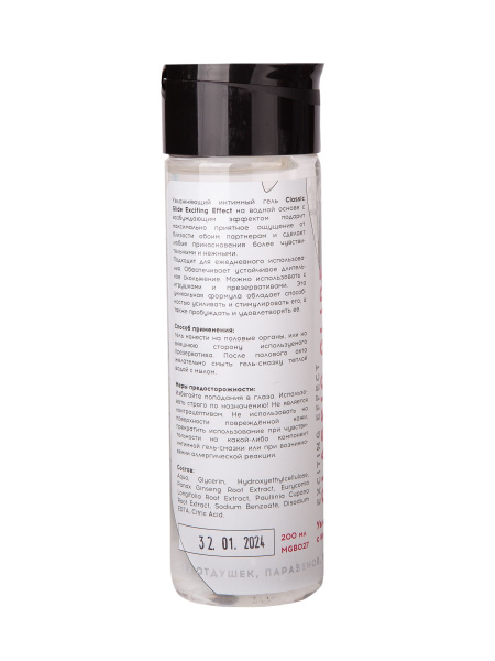Интимный гель на водной основе Classic Glide Exciting Effect с возбуждающим эффектом - 200 мл.— один из способов разнообразить игры в постели, сделать их пикантнее, добавить изюминки. Гель позволяет повысить чувствительность эрогенных зон, и каждое прикосновение превращается в маленький взрыв наслаждения. С возбуждающей смазкой секс становится более ярким, страсть достигает небывалой высоты, с который можно сорваться в потрясающий оргазм. Все это стоит того, чтобы купить такую формулу счастья. Доставка по России будет строго конфиденциальной.