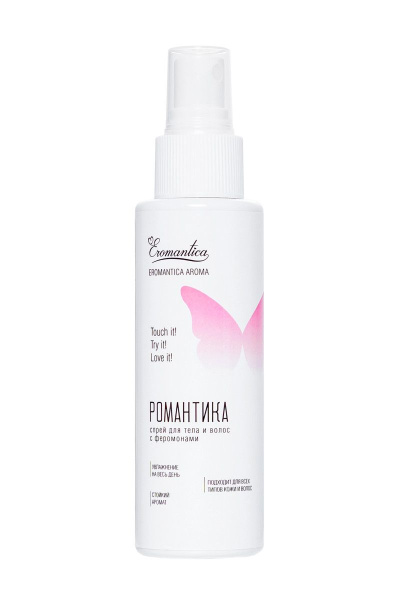 Спрей для тела и волос с феромонами Романтика - 110 мл. – популярная продукция, реализуемая по доступной цене. Это необходимый элемент в арсенале человека, привыкшего тщательно следить за собой. Спрей для тела и волос с феромонами Романтика - 110 мл. и другие товары раздела отличаются высоким качеством, облегчают уход за телом и позволяют быть на высоте в любой ситуации. Оставьте заказ на сайте, и вам не придется долго ждать доставки (работаем по всей России, все отправления конфиденциальны).