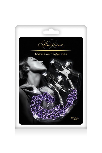 Зажимы для сосков с фиолетовой цепочкой Sweet Caress Nipple Chain – хороший выбор для тех, кто находится в поиске новых эмоций от интимной близости. Стильный аксессуар может стать элементом оригинальной ролевой игры, он подчеркнет красоту тела и повысит самооценку и сексуальную привлекательность в глазах партнера. Зажимы для сосков с фиолетовой цепочкой Sweet Caress Nipple Chain – безопасная продукция, созданная из качественных материалов, что позволяет использовать ее без опасений причинить вред здоровью. Это идеальный вариант для смелого сексуального эксперимента!