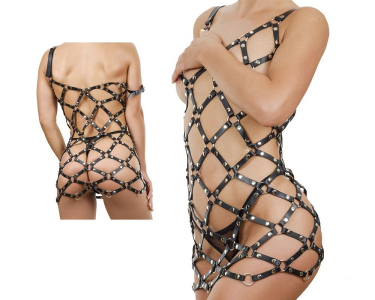Черное платье Boudica в виде сетки из кожаных полос — роскошная модель, которая придает уверенности в себе, срывает покровы скромности и выпускает на волю чувственность, притягивает партнера и вовлекает его в сексуальную игру, призом в которой будет незабываемое наслаждение. Не нужно ждать подходящего момента, чтобы купить такую роскошную вещь, вы можете сами создавать такие моменты. А мы обеспечим быструю доставку заказа по России.