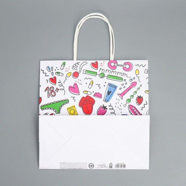 Сувенир с сексуальным подтекстом — нетривиальный вариант подарка независимо от повода. Купить его можно совсем недорого, зато получателю он доставит истинное удовольствие и заставит улыбнуться. В нашем каталоге собраны разноплановые товары, но все они отличаются высоким качеством исполнения и оригинальным дизайном. Подарочный крафтовый пакет«18» - 22×22×11 см. и другие приятные мелочи отправляются по всей России (конфиденциально). Доставка организуется сразу после подтверждения заявки и уточнения необходимых деталей.