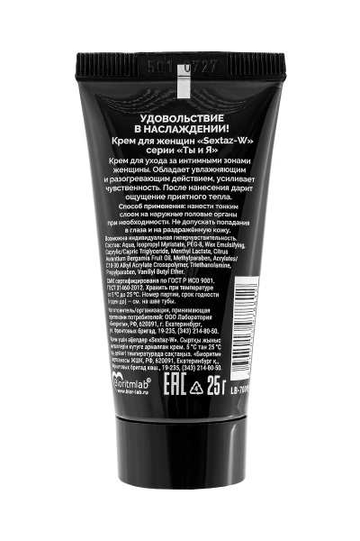 Крем для женщин Sextaz-W с возбуждающим эффектом - 25 гр.— один из способов разнообразить игры в постели, сделать их пикантнее, добавить изюминки. Гель позволяет повысить чувствительность эрогенных зон, и каждое прикосновение превращается в маленький взрыв наслаждения. С возбуждающей смазкой секс становится более ярким, страсть достигает небывалой высоты, с который можно сорваться в потрясающий оргазм. Все это стоит того, чтобы купить такую формулу счастья. Доставка по России будет строго конфиденциальной.
