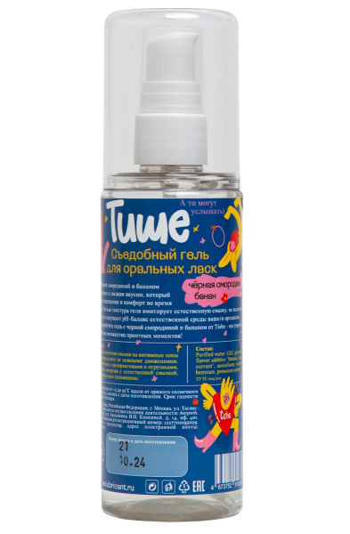 Серые будни, заполненные постоянными делами и хлопотами, очень утомляют и подавляют сексуальность человека. В итоге нет никакого настроя для реализации жарких сексуальных сценариев. Мы знаем, как исправить ситуацию, чтобы в жизни всегда было место романтике и страсти, а близость была желанной. Эффективным оружием в борьбе за качество интимной жизни являются массажные масла и свечи. Купив их, вы сможете полноценно расслабиться и забыть о тревогах, погрузиться в мир фантазий и чувственных переживаний. Съедобный лубрикант на водной основе Tishe с ароматом черной смородины и банана - 125 мл. и другие варианты из нашего каталога позволяют создать особое настроение, что усиливает наслаждение от каждого прикосновения. Продукция имеет тонкие приятные ароматы и абсолютно безопасна для здоровья. Производится доставка товара по всей России.