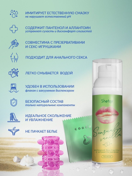Серые будни, заполненные постоянными делами и хлопотами, очень утомляют и подавляют сексуальность человека. В итоге нет никакого настроя для реализации жарких сексуальных сценариев. Мы знаем, как исправить ситуацию, чтобы в жизни всегда было место романтике и страсти, а близость была желанной. Эффективным оружием в борьбе за качество интимной жизни являются массажные масла и свечи. Купив их, вы сможете полноценно расслабиться и забыть о тревогах, погрузиться в мир фантазий и чувственных переживаний. Интимная гель-смазка Shefox Premium «Чувственная ваниль» - 50 мл. и другие варианты из нашего каталога позволяют создать особое настроение, что усиливает наслаждение от каждого прикосновения. Продукция имеет тонкие приятные ароматы и абсолютно безопасна для здоровья. Производится доставка товара по всей России.