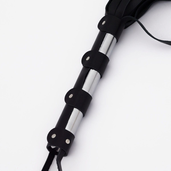 Черный кожаный флоггер со стальной ручкой - 45 см. – довольно популярная позиция нашего каталога. Товар создан из безопасных материалов, он может быть использован для наказания либо просто в качестве элемента сексуального образа в ролевой игре. Черный кожаный флоггер со стальной ручкой - 45 см. – это возможность открыть неизвестные грани своей сексуальности и достичь новых вершин удовольствия.