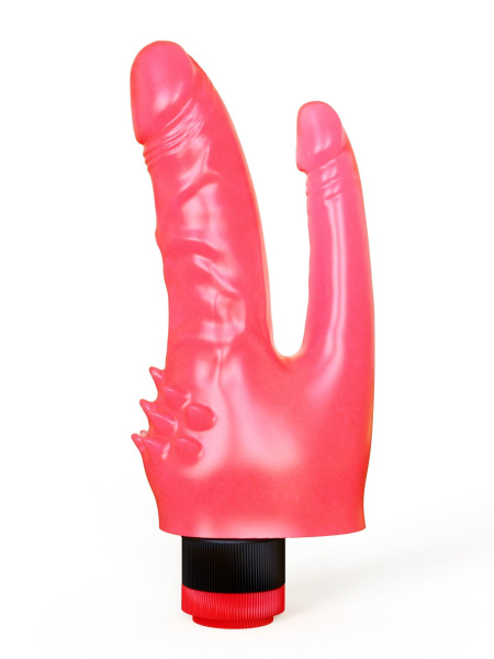 Двойной розовый вибромассажёр с шипами у основания - 20,5 см. – игрушка высочайшего качества, которая способна подарить ни с чем не сравнимое наслаждение благодаря максимально эффективной стимуляции определенных точек. Модель создана с учетом особенностей человеческого тела и обеспечивает комфортное двойное проникновение. Двойной розовый вибромассажёр с шипами у основания - 20,5 см. – уникальная разработка, гарантирующая острые ощущения при правильном использовании. Товар безопасен, так как создан из гипоаллергенного материала.