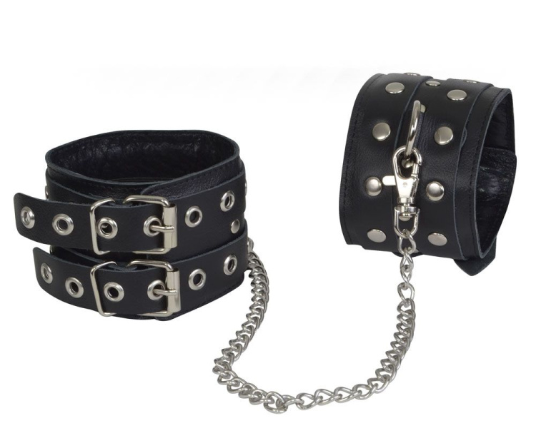 Чёрные кожаные оковы, соединенные цепочкой – важный элемент игры, ведь атрибутика в сексе значит очень много. Она помогает создать нужный настрой, позволяет полностью погрузиться в атмосферу, чтобы получить максимальное удовольствие от происходящего. Чёрные кожаные оковы, соединенные цепочкой и другие подобные товары могут возродить отношения, которые, казалось бы, изжили себя, подарить захватывающие ощущения, когда от страсти кружится голова, сделать секс более интересным, многогранным. Это возможность удивить себя и партнера. Просто оформите заявку на сайте, а мы позаботимся о доставке товара по России.