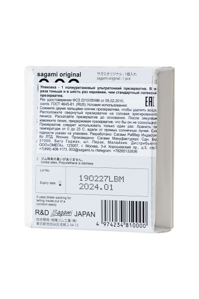 Ультратонкий презерватив Sagami Original 0.02 - 1 шт. — надежная защита, обеспечивающая комфорт во время полового акта. Кондом создан из качественного материала высокой прочности, но при этом не притупляет ощущения от проникновения. Близость будет яркой, а удовольствие максимальным. Оставляйте заказ на сайте, доставка товара по России будет организована очень оперативно.