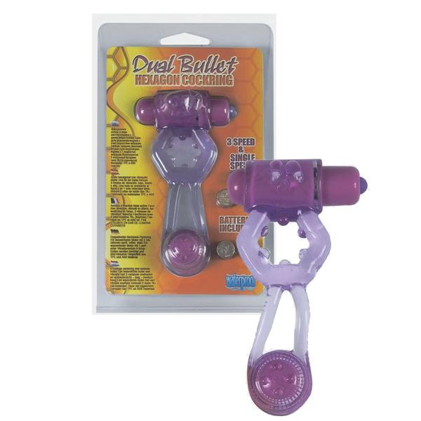 Фиолетовое эрекционное кольцо Dual Bullet Hexagon Cockring — игрушка для мужчин, которые стремятся разнообразить свою интимную жизнь и не боятся при этом прибегать к современным продуктам секс-индустрии. Данная модель позволит увеличить время эрекции за счет снижения оттока крови от члена, а значит, и время полового акта, а также его качество. Это возможность попробовать больше интересных поз, насладиться новыми ощущениями в полной мере, открыть новые стороны своей чувственности. Купить эрекционное кольцо можно не только для развлечения, но и по медицинским показаниям (аксессуар помогает при эректильной дисфункции). Такая универсальность делает товар очень востребованным. Он абсолютно безопасен при соблюдении нехитрых правил использования, ухаживать за ним несложно. Доставку заказа по России мы организуем в кратчайшие сроки.