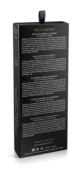 Стимулирующий гель для женщин Feu d’Amour— один из способов разнообразить игры в постели, сделать их пикантнее, добавить изюминки. Гель позволяет повысить чувствительность эрогенных зон, и каждое прикосновение превращается в маленький взрыв наслаждения. С возбуждающей смазкой секс становится более ярким, страсть достигает небывалой высоты, с который можно сорваться в потрясающий оргазм. Все это стоит того, чтобы купить такую формулу счастья. Доставка по России будет строго конфиденциальной.